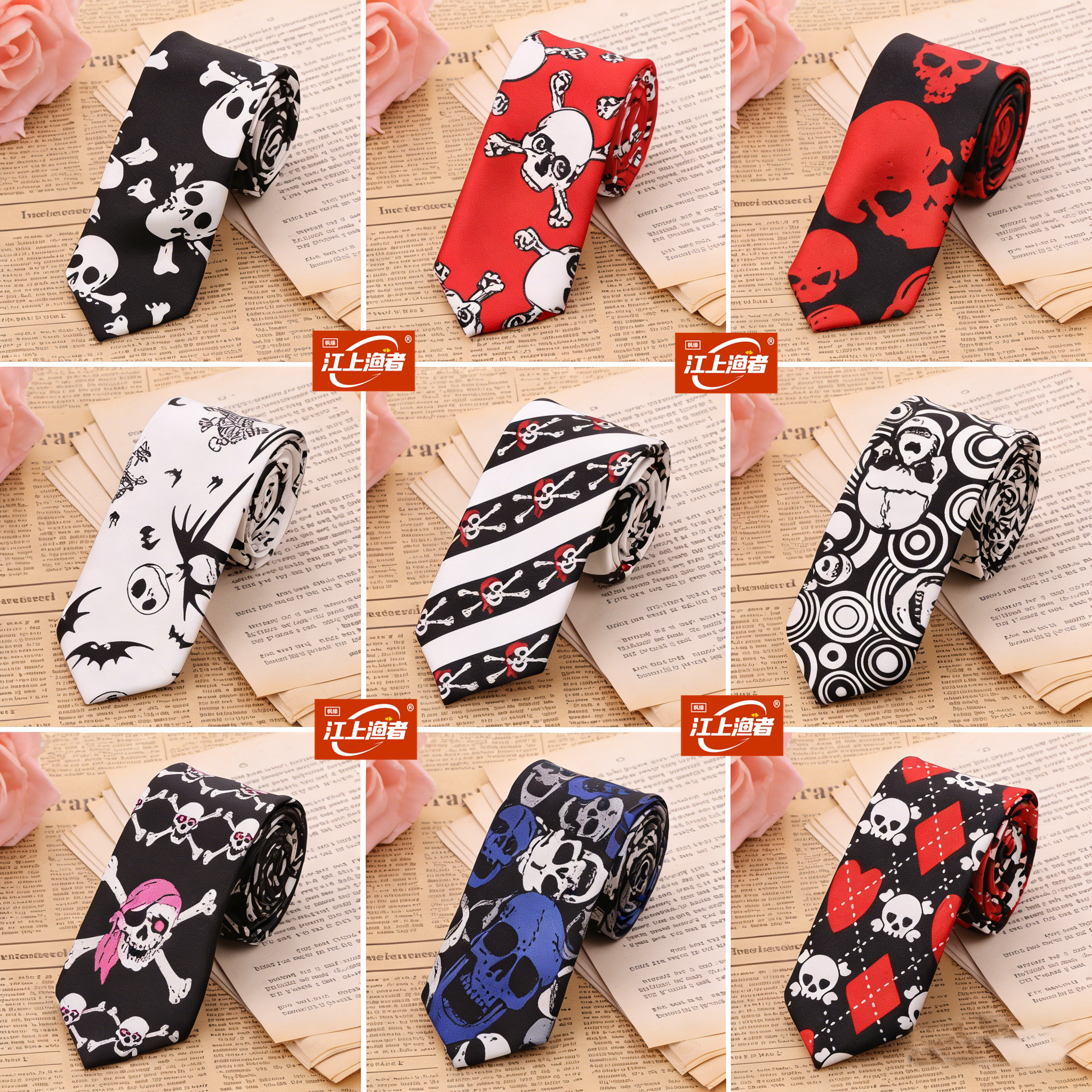 手打 潮流男女 5cm韩版细窄款 格子条纹圆点骷髅头学生院风小领带