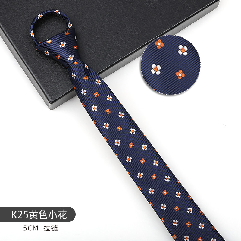 黄色小花领带男结婚蓝色窄拉链韩版新郎结婚商务5cm免打结领带