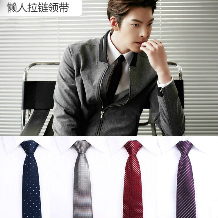 5cm6cm休闲韩版窄版易拉得懒人拉链领带男 正装商务黑色纯色学生