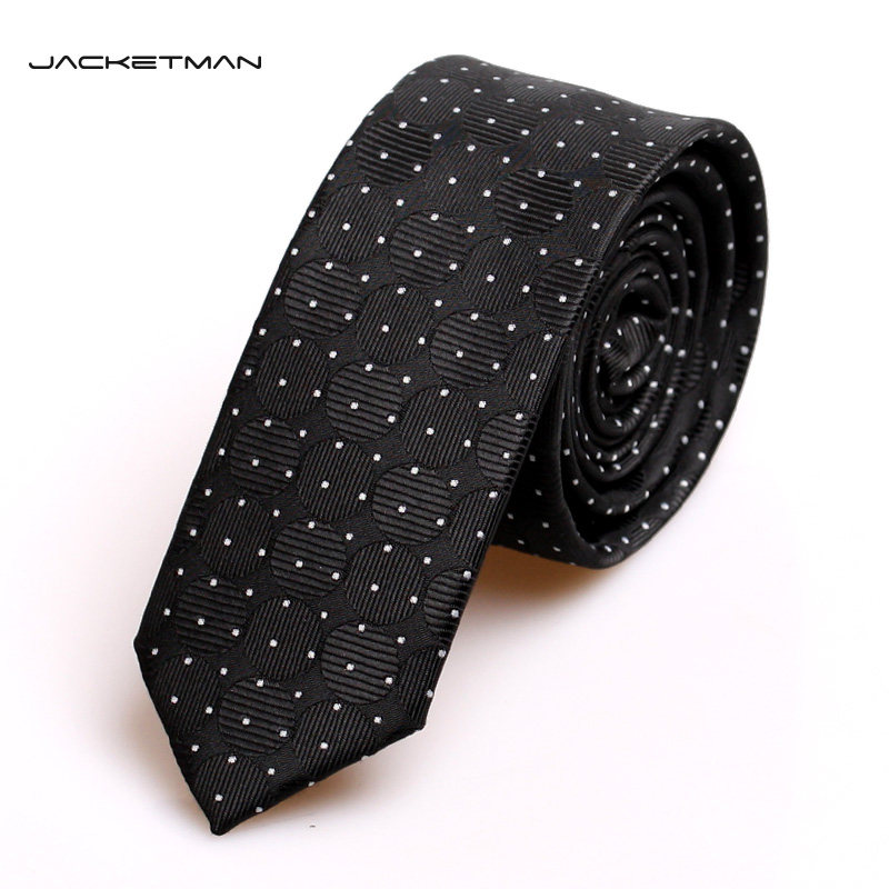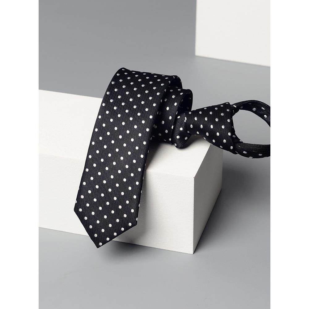 Jacketman男士黑色圆点小领带韩版窄款休闲时尚潮男5cm盒装