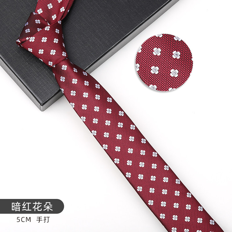 暗红花朵领带男结婚蓝色窄拉链韩版新郎结婚商务5cm免打结领带
