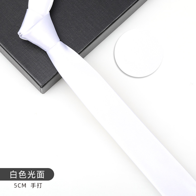 5cm韩版细窄时尚英伦 男女休闲易拉得拉链懒人亮面纯白色方便领带
