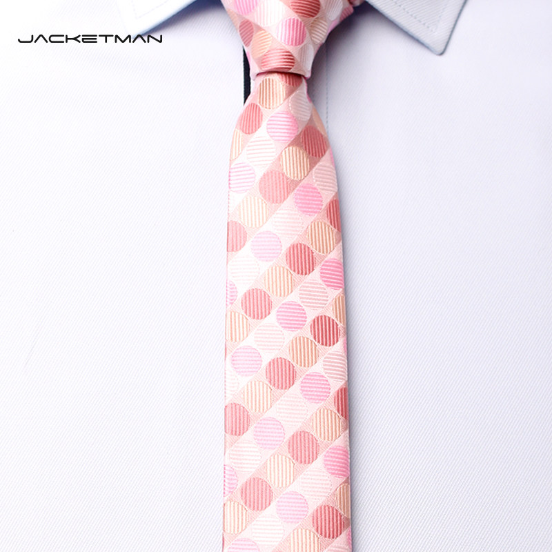 Jacketman领带男 韩版窄时尚休闲小5CM粉色圆点新郎领带男韩版潮