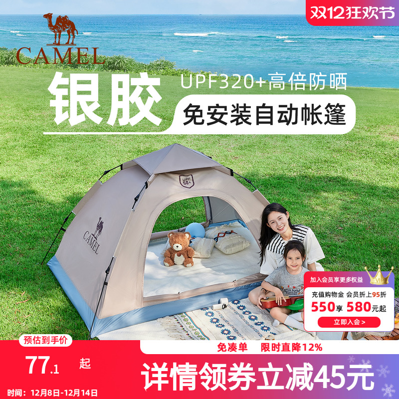 骆驼野营帐篷户外便携式折叠全自动双人防雨加厚野外露营装备全套
