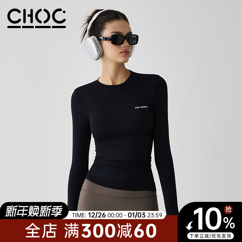 Choc女孩健身服秋季款运动上衣修身速干衣跑步辣妹长袖T恤瑜伽服