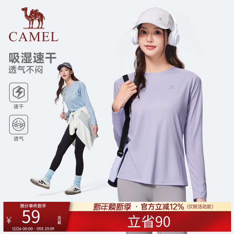 骆驼运动长袖T恤女士2025夏季户外速干衣跑步健身瑜伽服内搭上衣