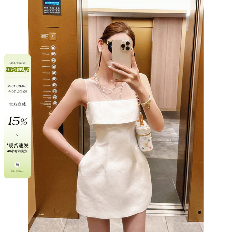 李婉君纯欲网纱拼接无袖连衣裙女夏气质名媛礼服裙生日裙a字短裙