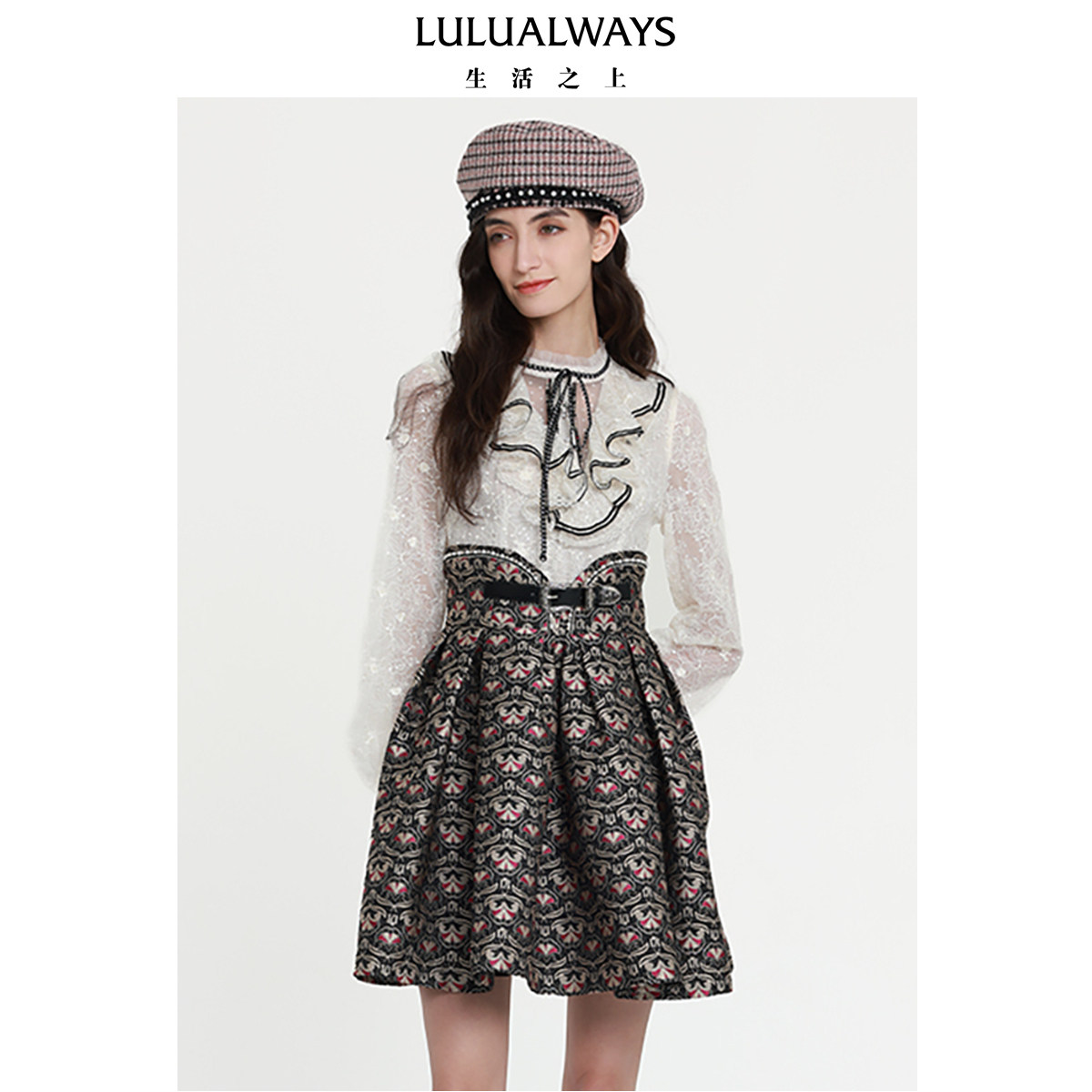 LULUALWAYS我爱露露26夏季新款法式浪漫风网纱拼接荷叶边连衣裙