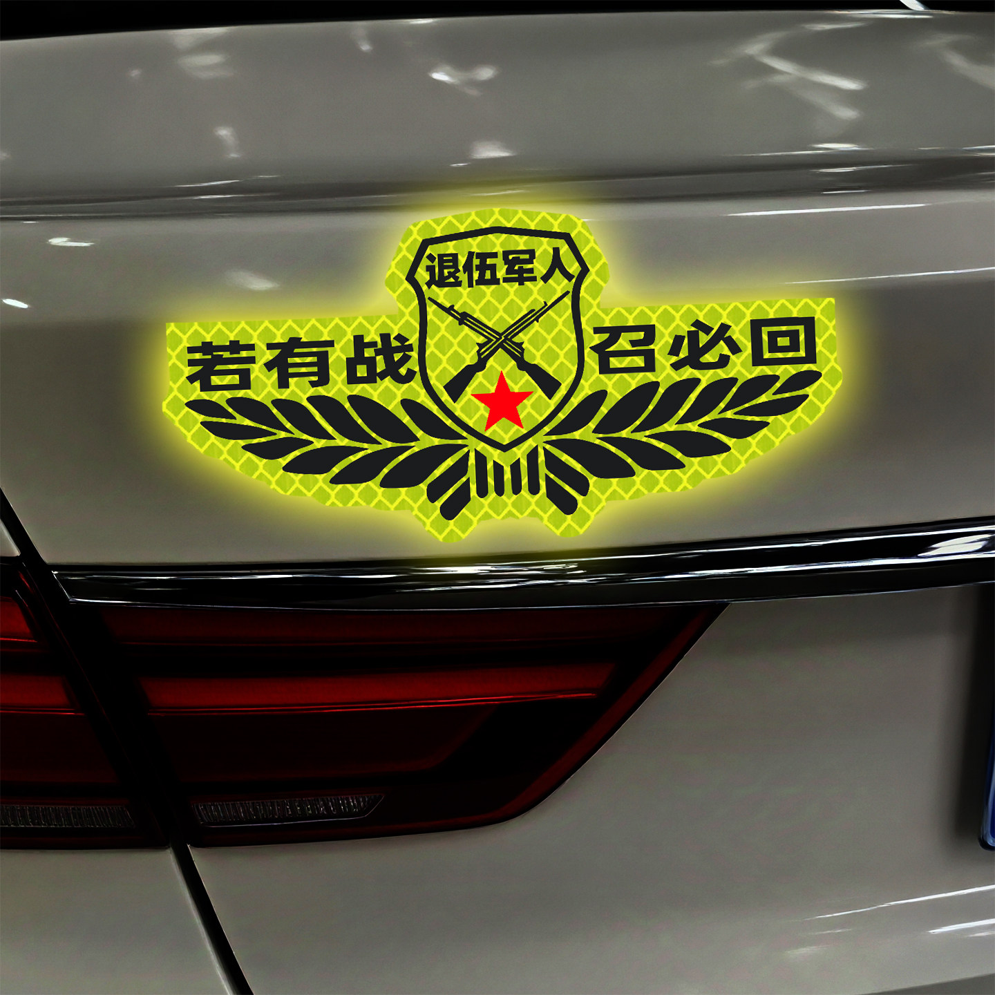 2025新款汽车反光贴纸创意文字若有战召必回装饰个性创意退伍军人