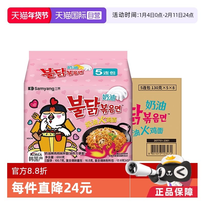 【自营】韩国进口三养鸡肉奶油味拌面火鸡面130g*5包*8袋方便面