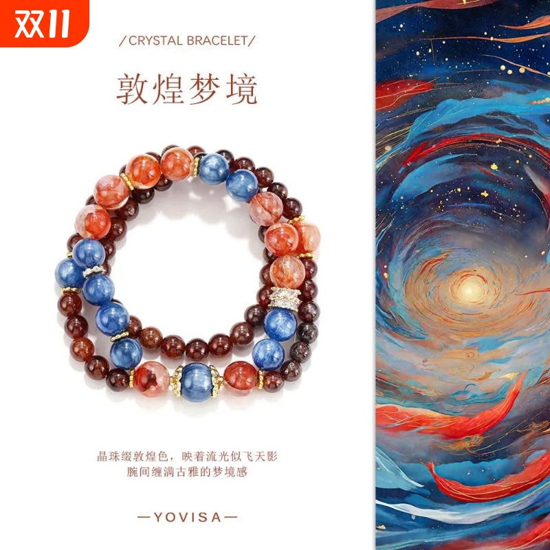 WAY OF MOON原创设计佛青蓝色青金小众精致感银色做旧复古手链