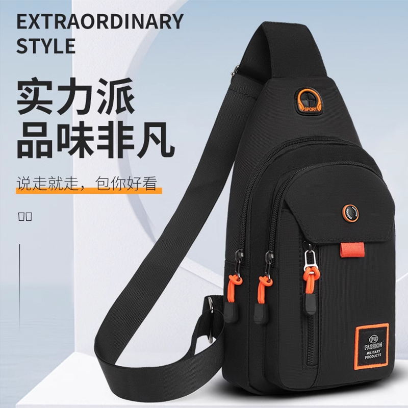 胸包单肩男士运动休闲通勤胸前包男款小背包女尼龙布黑色斜挎包男