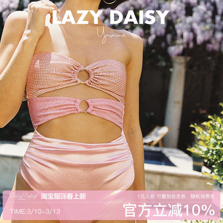 Lazy Daisy Yasmine系列 粉色细闪法式度假高级感性感连体泳衣女