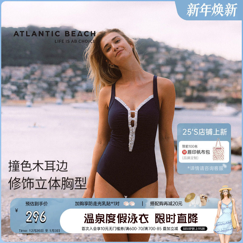 atlanticbeach2025新款性感连体泳衣女吊带撞色木耳花边度假泳装