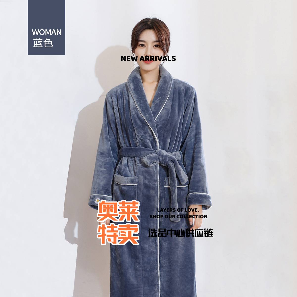 揭阳高端睡衣秋冬款法兰绒睡袍 男女侣睡衣 长款宽松保暖法兰绒睡