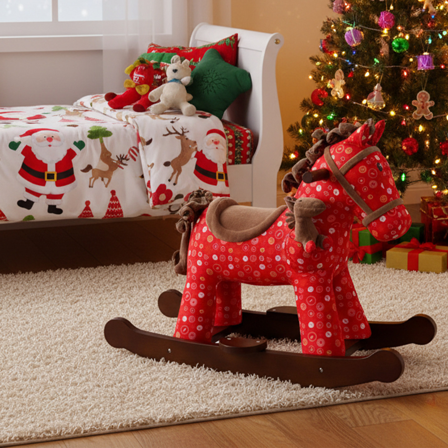 毛绒木马儿童摇摇马宝宝摇椅音乐婴儿玩具早教周岁生日圣诞节礼物