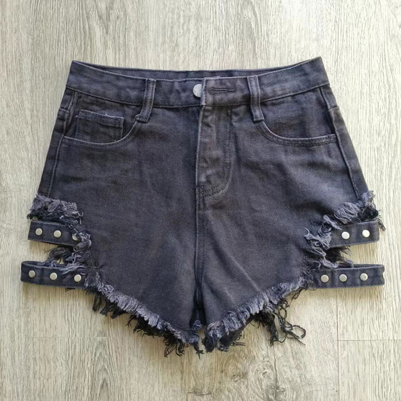 黑色牛仔短裤女夏季新款韩版洋气镂空阔腿裤BF风高腰宽松显瘦热裤