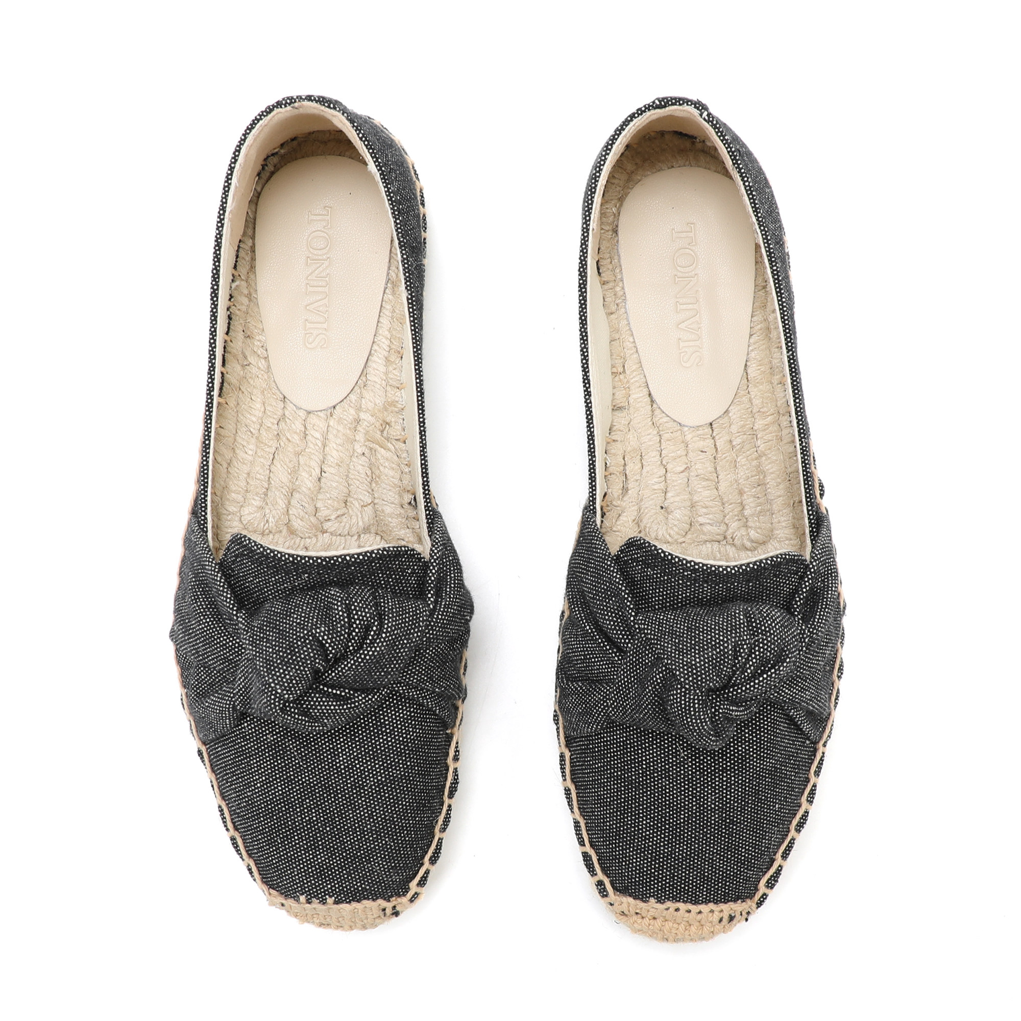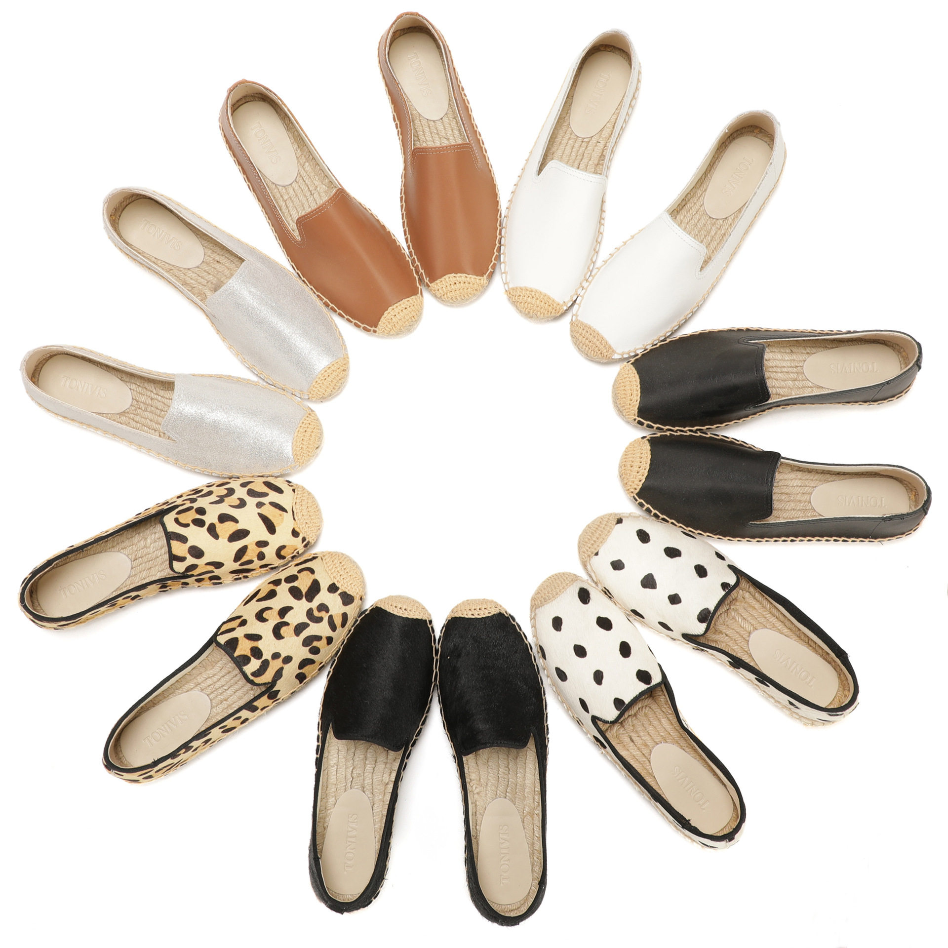 外贸新款帆布渔夫鞋女一脚蹬百搭舒适平底透气单鞋草编鞋懒人鞋女