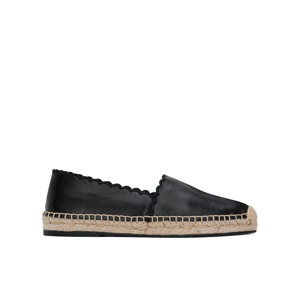 香港直邮Saint Laurent 黑色logo刺绣草编鞋 563752GUP00