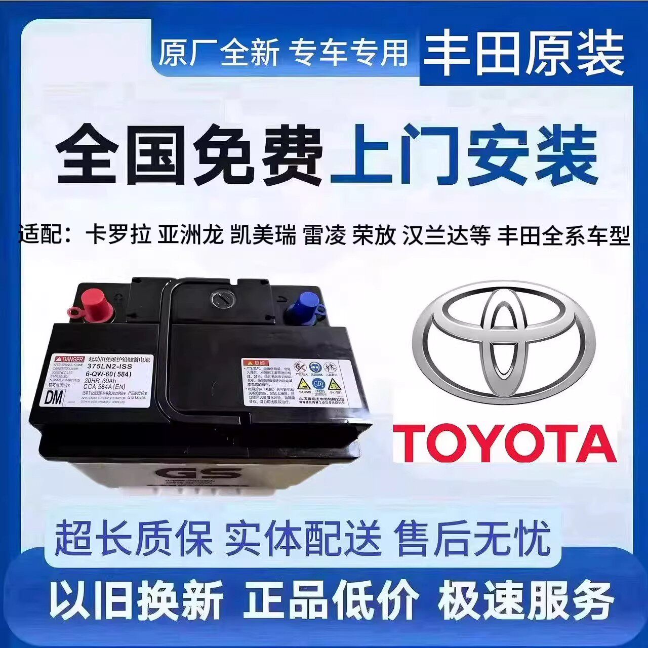 丰田原装蓄电池适配卡罗拉亚洲龙凯美瑞汉兰达荣放雷凌等全系车型