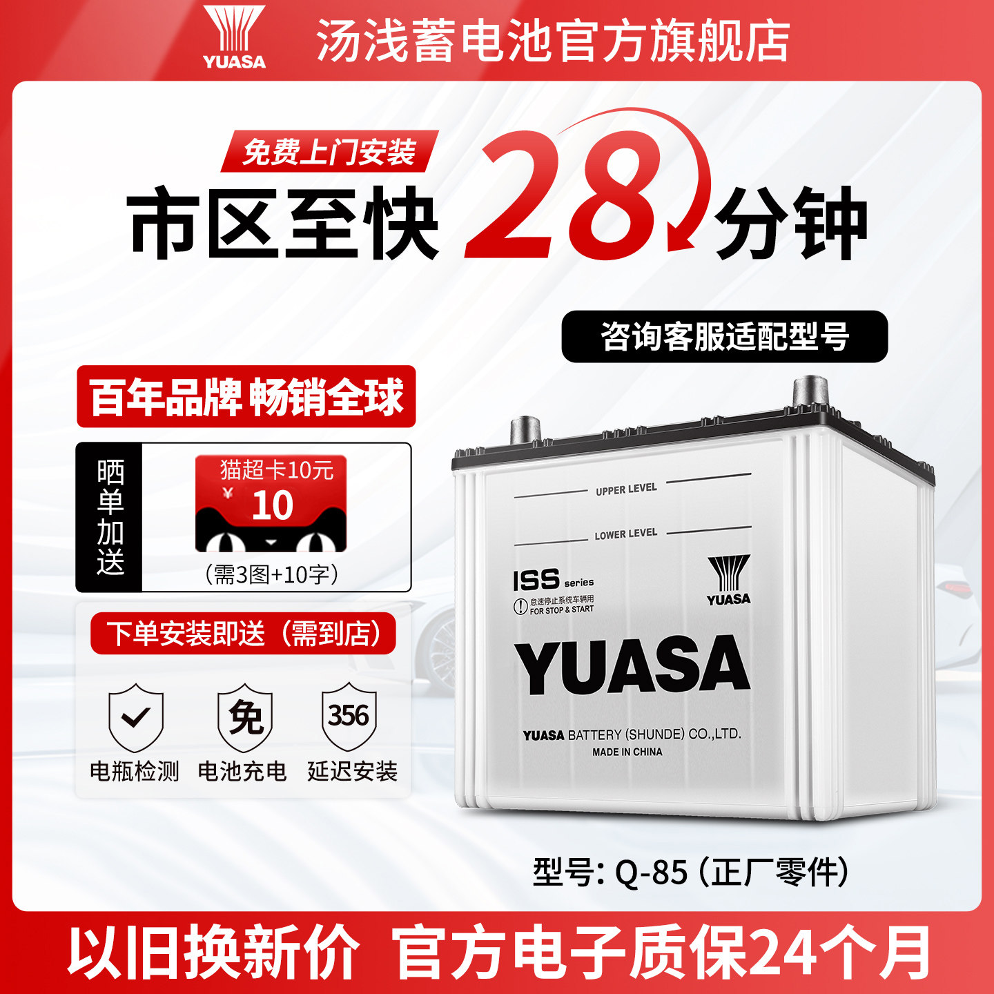 汤浅汽车电瓶蓄电池启停正厂零件Q85 雷凌CRV雅阁红旗H5阿特兹