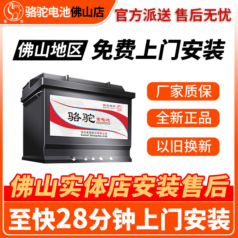 佛山骆驼汽车电瓶蓄电池12v45/60-110ah适配小轿车五菱朗逸科鲁兹