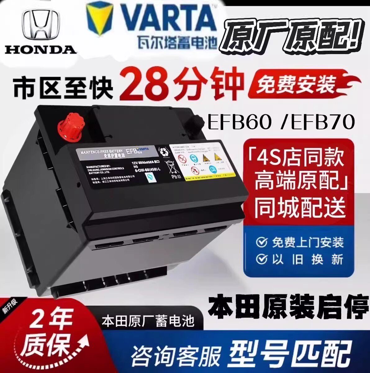 本田原装启停EFB汽车蓄电池适配本田思域CRV雅阁XRV缤智URV冠道