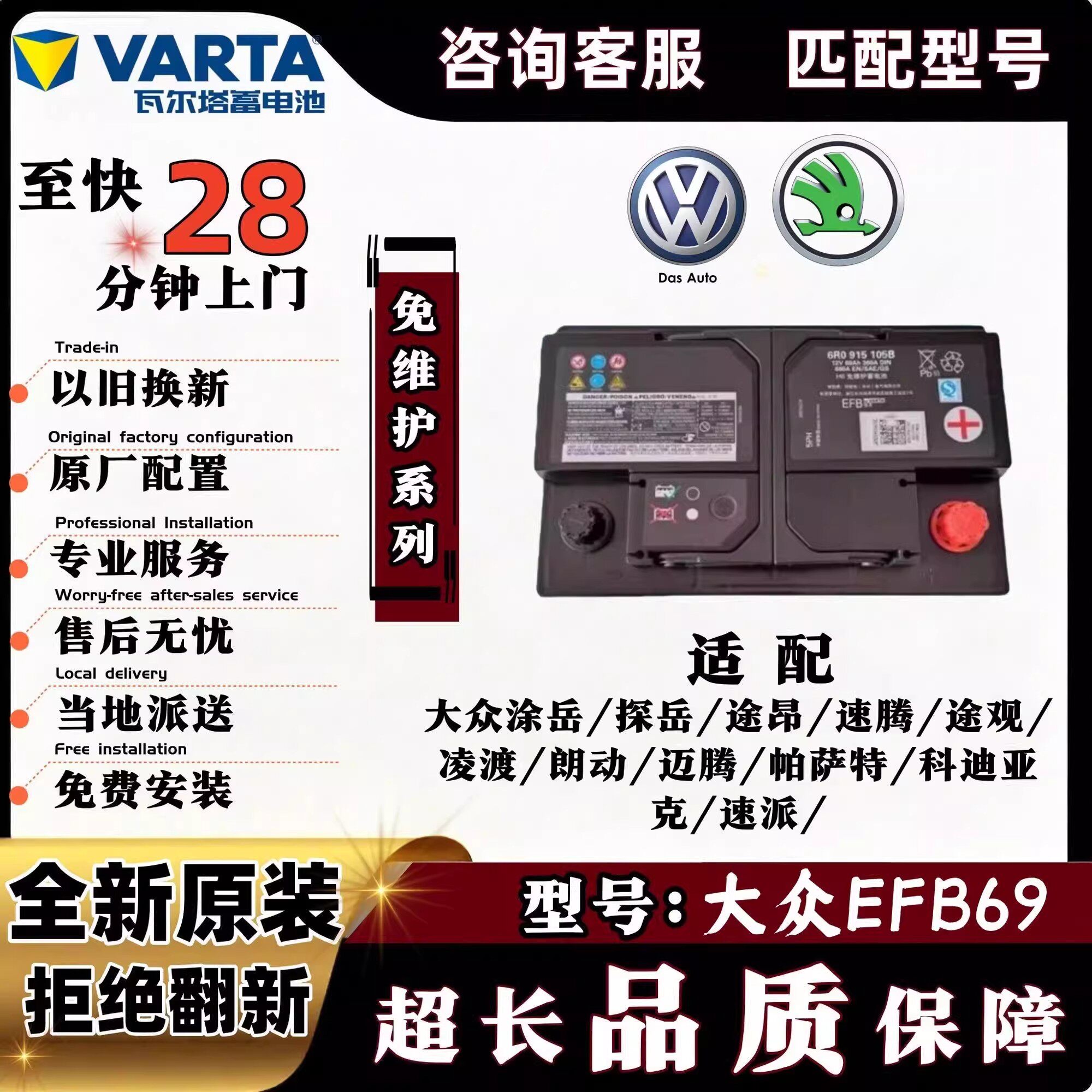 重庆瓦尔塔汽车电瓶蓄电池科鲁兹卡罗拉POLO雅阁12v45/60ah-110ah
