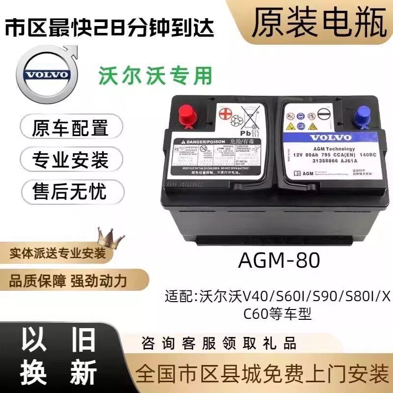原厂沃尔沃启停AGM蓄电池适配XC90 XC60 V40 S60L S80L汽车蓄电池