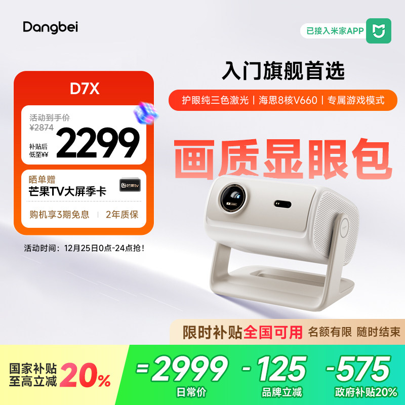 【重磅新品 全国国补立减20%】当贝D7X投影仪家用超高清小型便携激光电视高清高亮智能投影机手机投屏