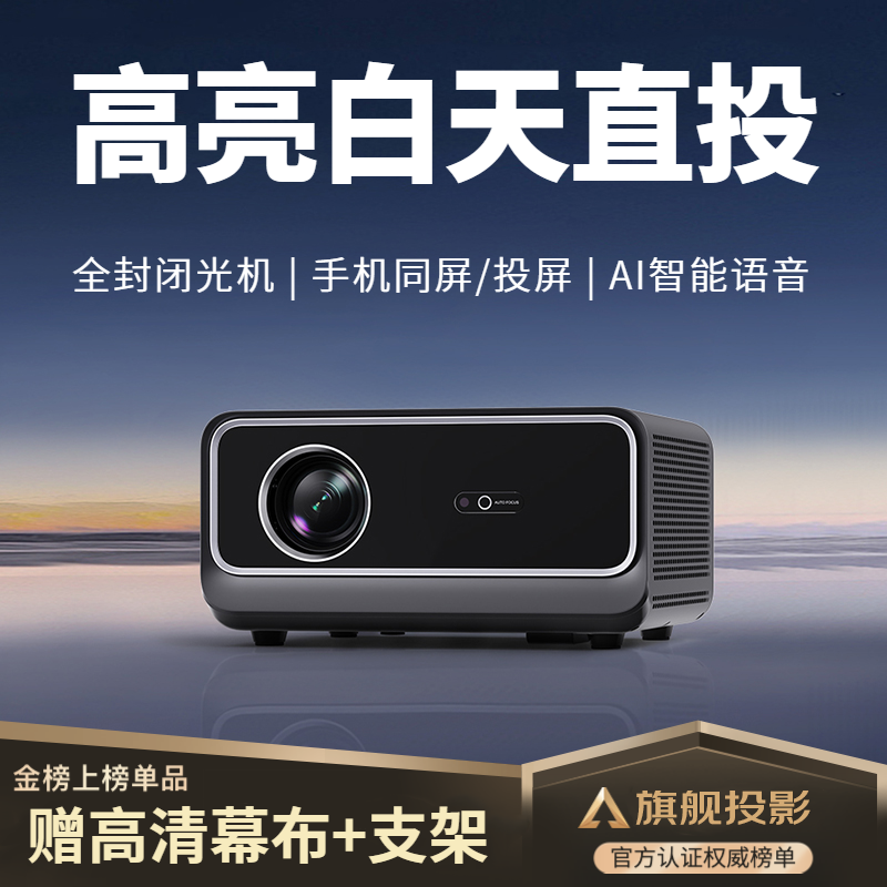 26年新款投影仪家用高清4K白天高亮十大品牌卧室投墙小型投影机激光电视机幕布一体可连手机投屏酒店家庭影院