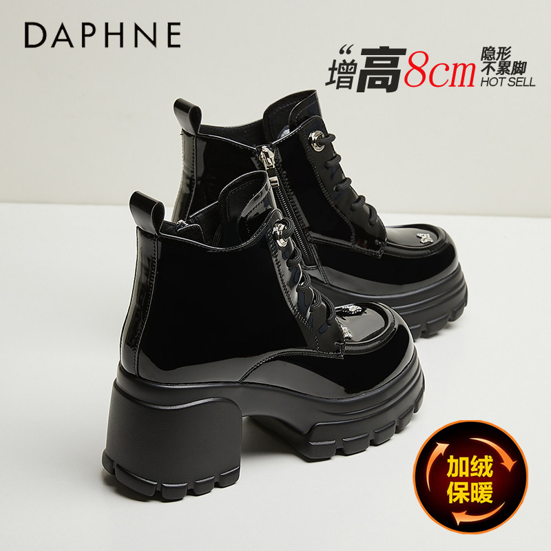 达芙妮马丁靴女英伦风2026秋冬新款小个子加绒短靴厚底内增高女靴