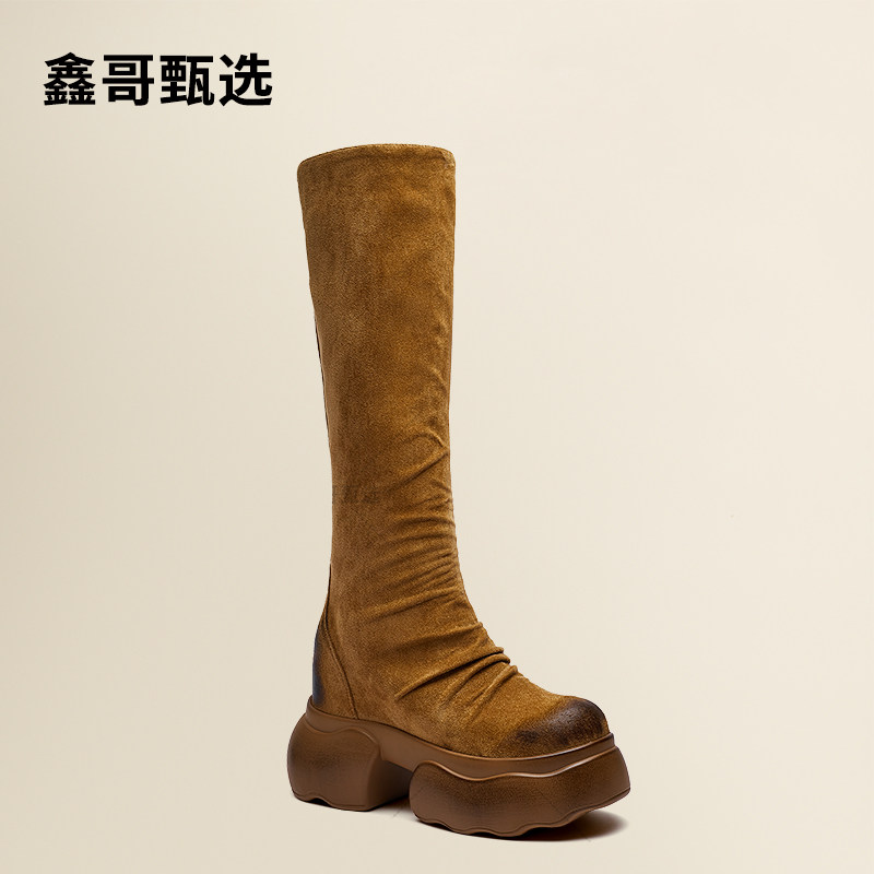 鑫哥甄选8-13厘米2025秋新款长筒羊京绒厚底小个子内增高女靴子