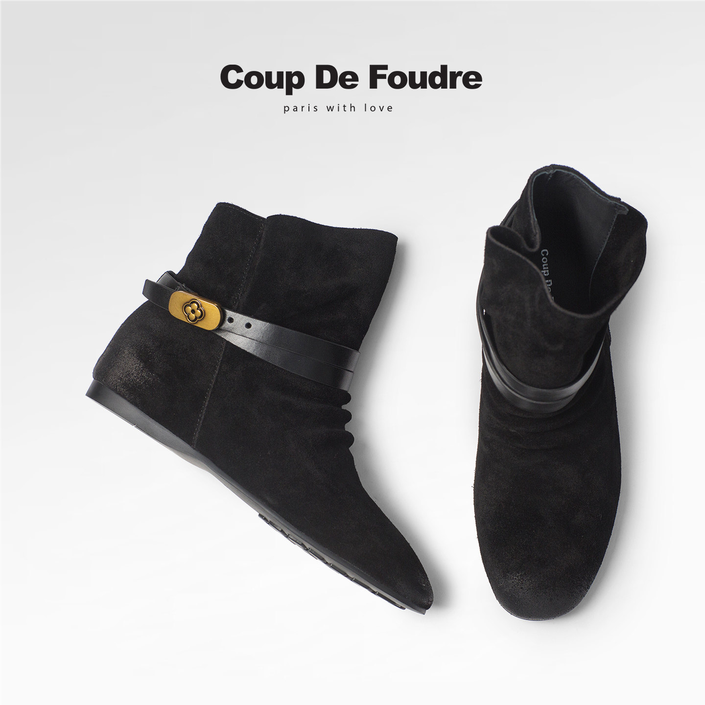羊猄绒面~法式粗低跟短靴女秋冬新款加绒方头通勤工作内增高女靴