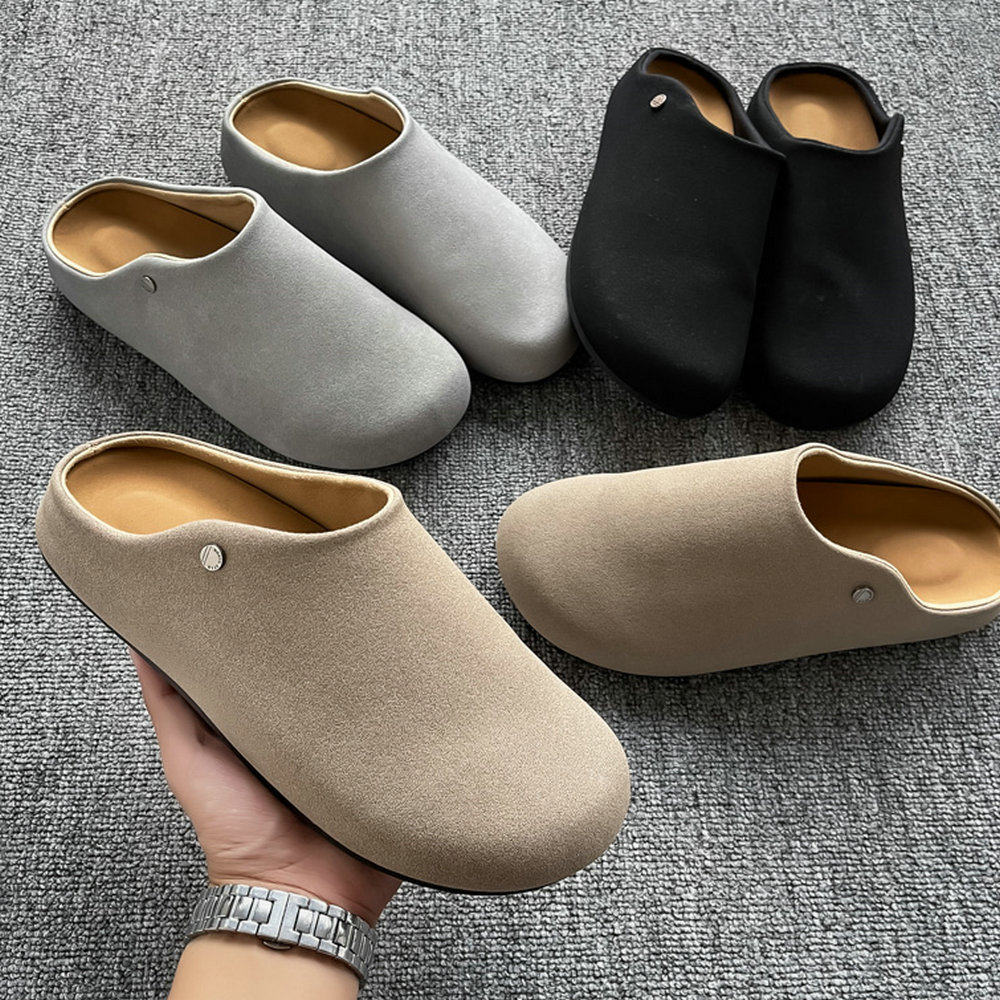 老钱风男鞋冬季拖鞋外穿办公室拖鞋一脚蹬包头软底半拖懒人鞋男士