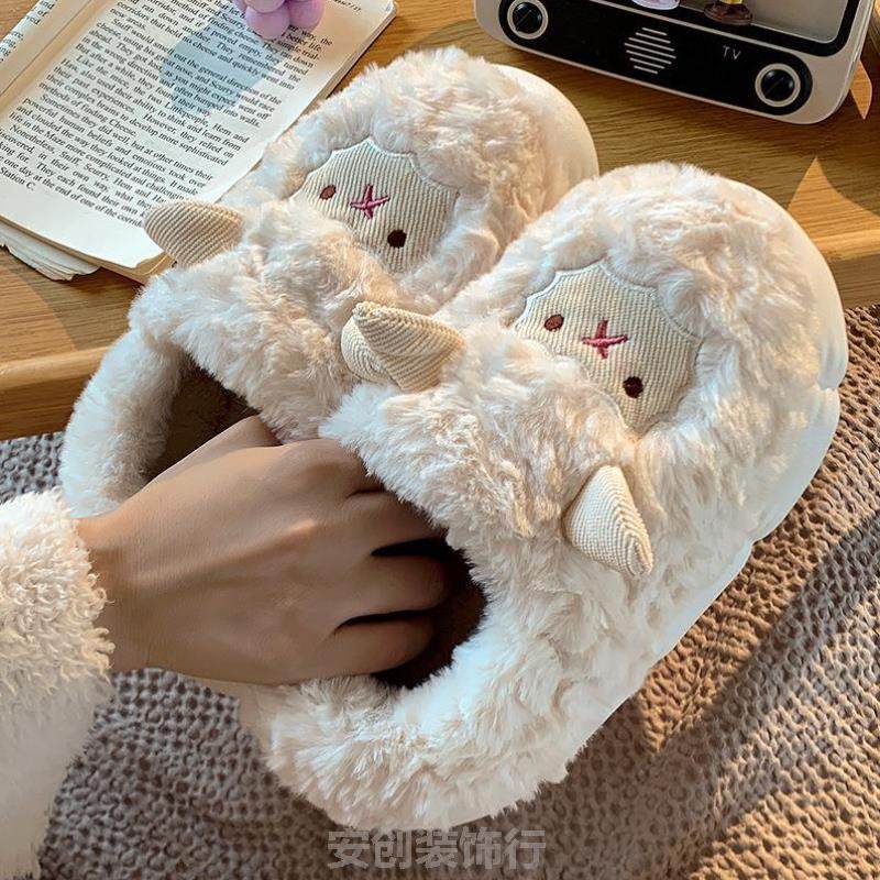 秋冬季拖鞋女室内保暖厚底防滑居家毛拖鞋加厚加毛毛绒女士棉拖鞋