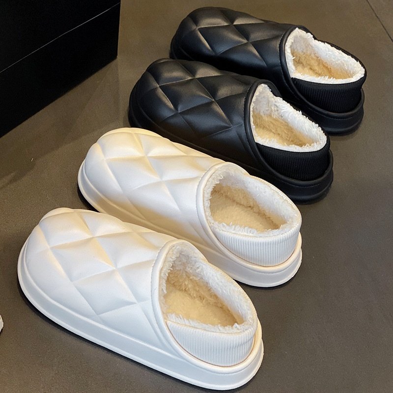 新款居家皮拖鞋秋冬季男女情侣保暖防水防滑室内家用静音时尚棉拖