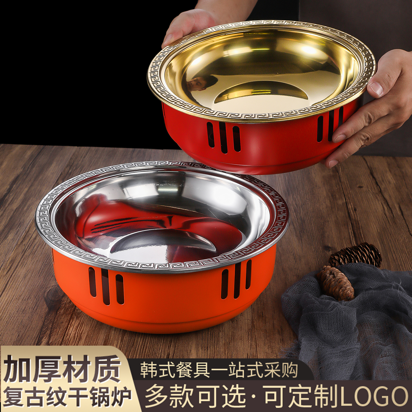 韩式不锈钢高边干锅炉金色加热汤锅保温炉酸菜鱼锅汤煲海鲜大咖炉