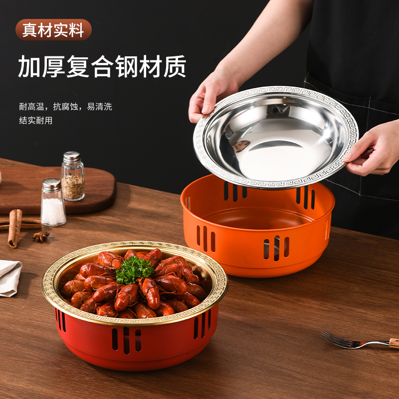 圆形干锅炉商用不锈钢酒精炉麻辣小龙虾牛蛙盘剁椒鱼锅海鲜大咖盘