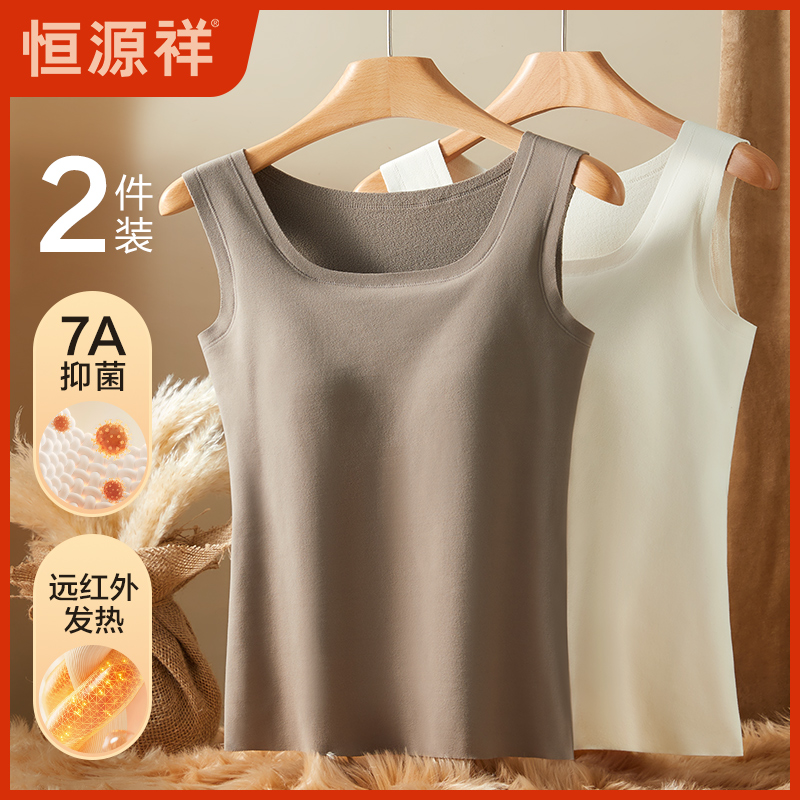 恒源祥保暖内衣女款冬季羊绒蚕丝发热打底上衣免穿文胸背心带胸垫