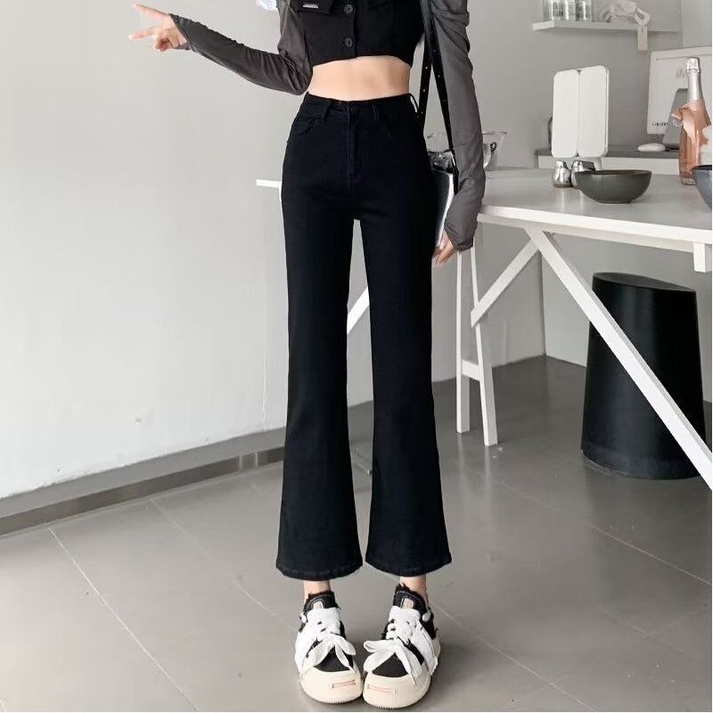 360万向弹!~黑色高腰微喇牛仔裤女秋季新款百搭修身显瘦九分裤子