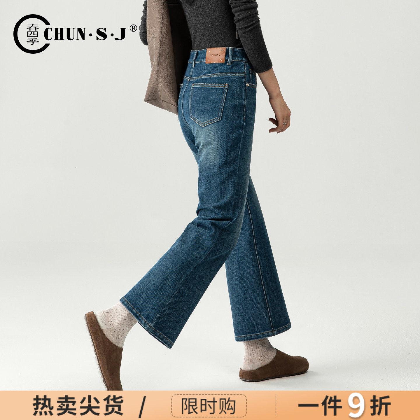 梨型身材微喇开叉牛仔裤女秋冬胖妹妹mm高腰弹力显瘦直筒九分裤子