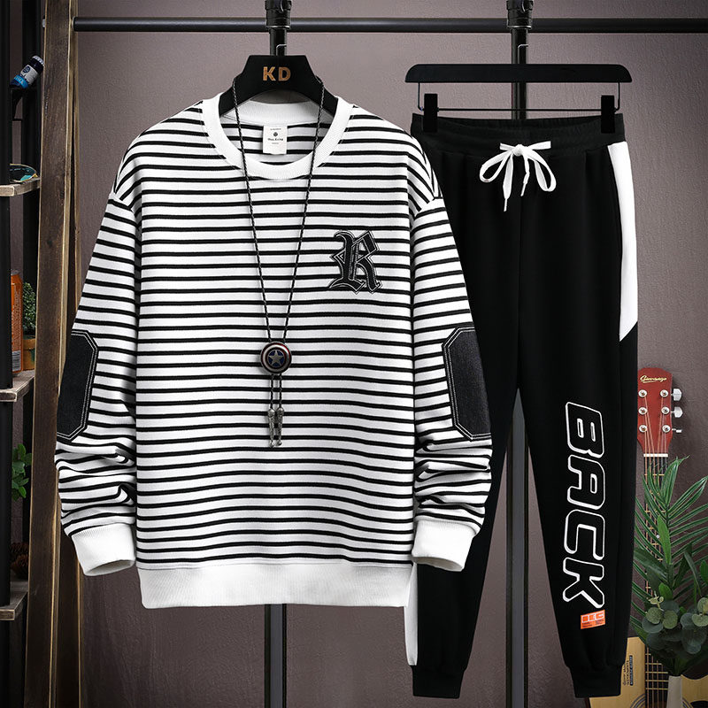 13青少年卫衣套装男16岁大童春秋15初中高中学生帅气男孩条纹T恤