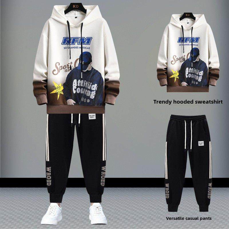 2025秋冬外套卫衣男休闲运动套装男装帅气一套搭配连帽学生青少年