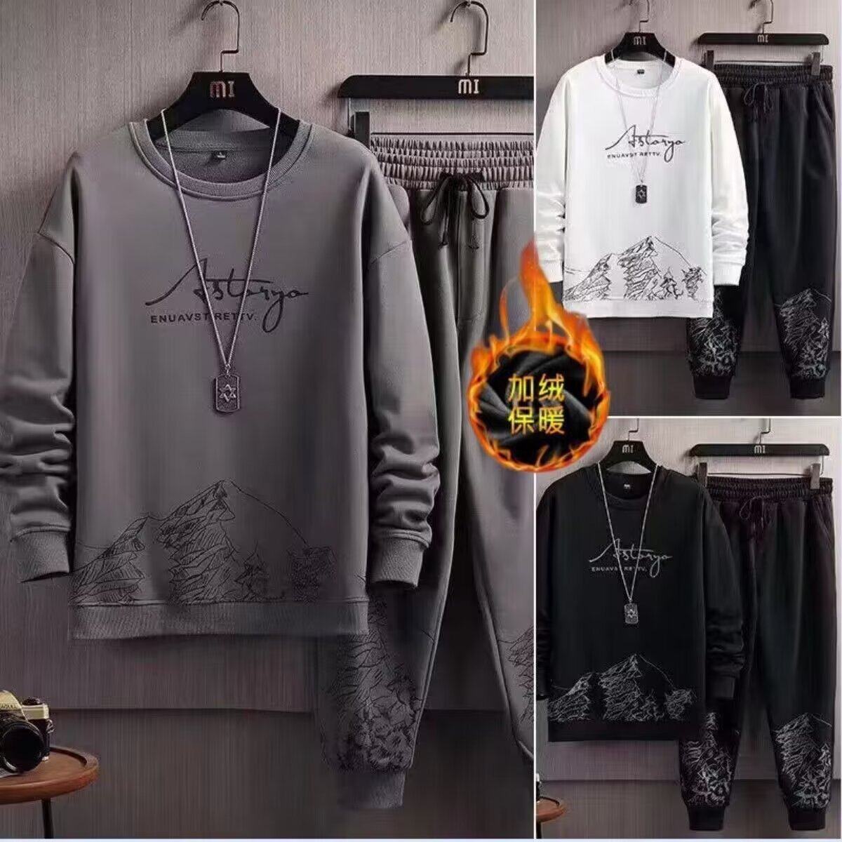 真维斯加绒运动套装男士保暖2026新款青少年卫衣男款一整套男装Q