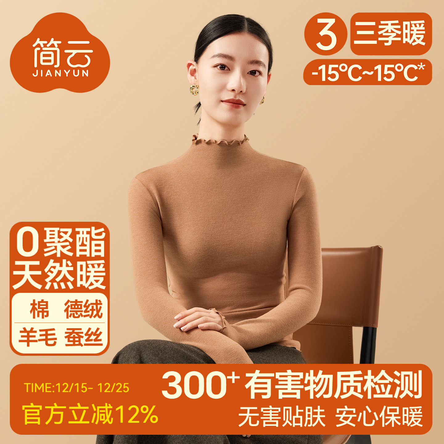 简云德绒半高领保暖内衣女秋衣加绒长袖T恤羊毛蚕丝上衣打底衫冬