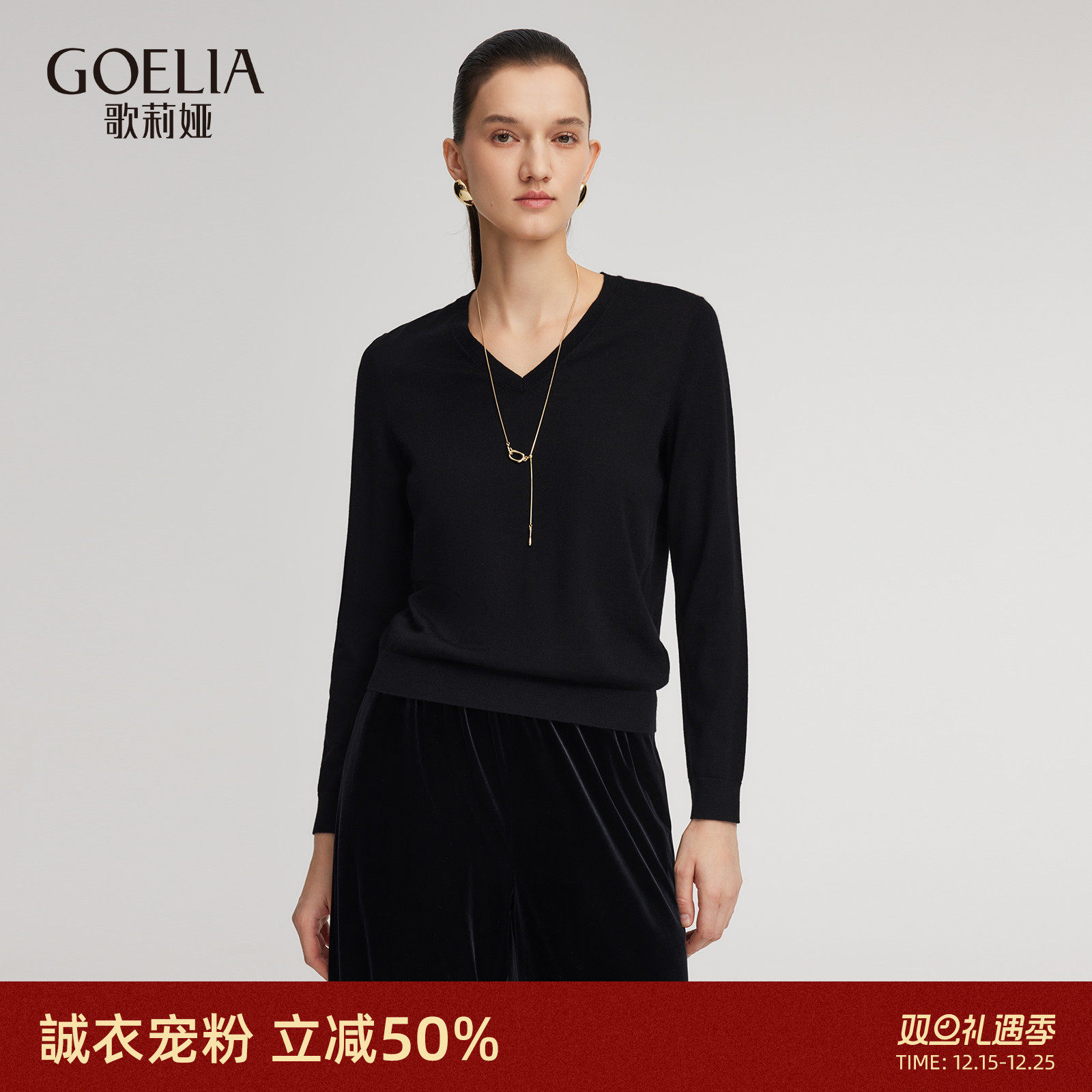 首降5折|歌莉娅莱赛尔桑蚕丝上衣女秋冬2025V领长袖内搭打底衫