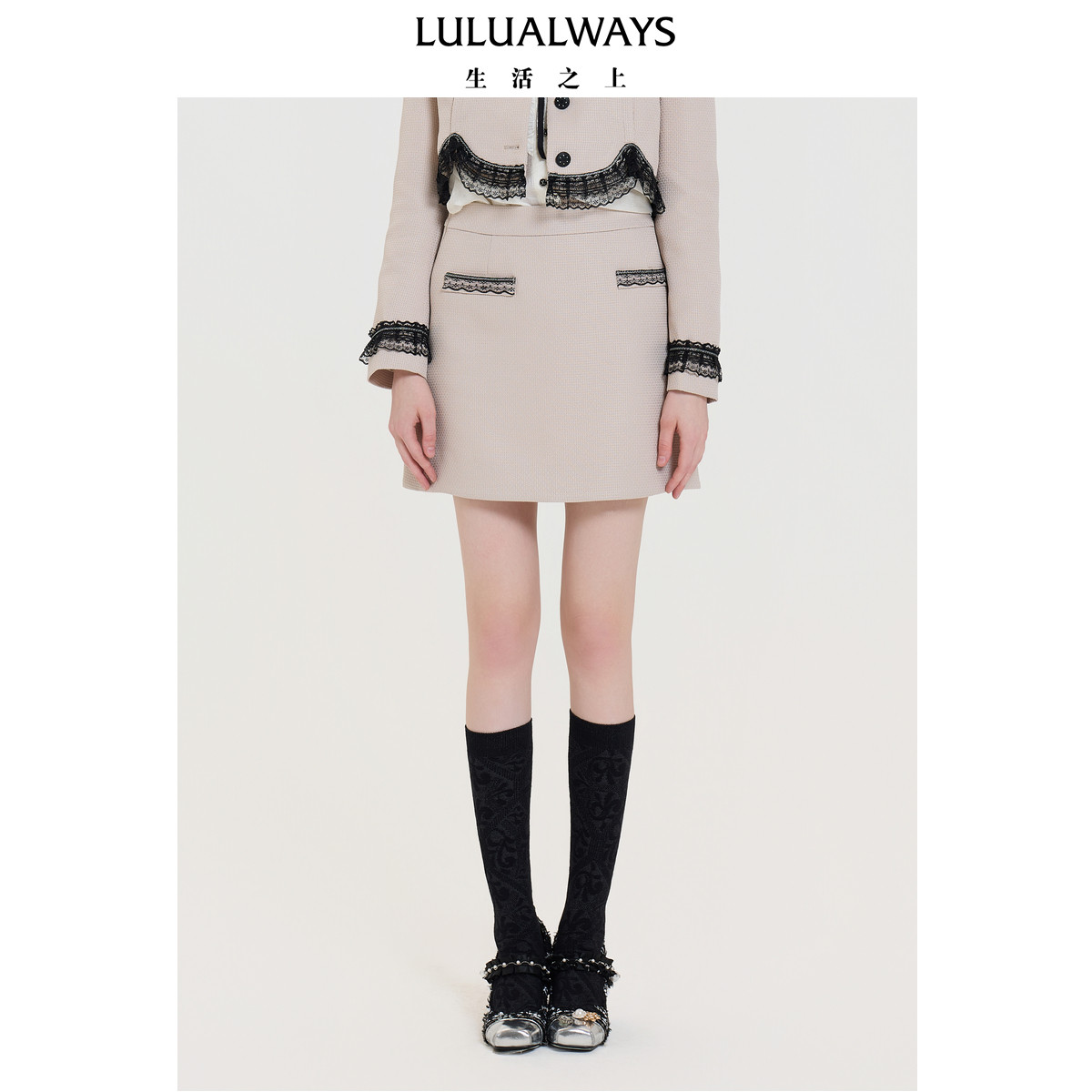 LULUALWAYS我爱露露25秋季新款优雅气质蕾丝短裙简约百搭半身裙女