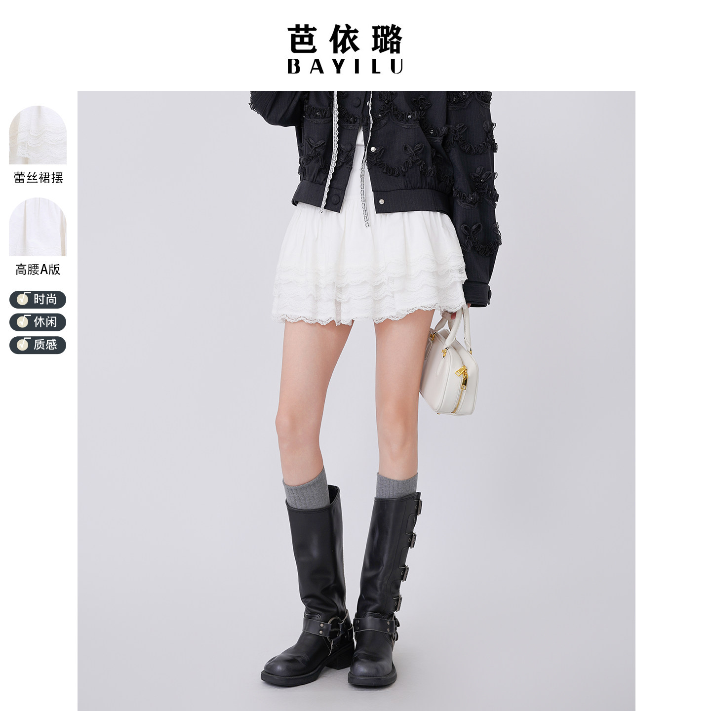 芭依璐2026春装新款半身裙松紧腰气质百搭蕾丝短裙A字裙包臀裙女