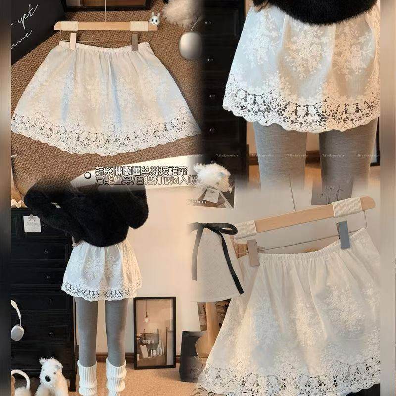 新款2025秋冬蕾丝大码百搭卫衣打底叠穿内搭遮屁帘下摆短裙半身裙
